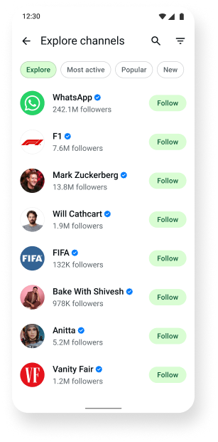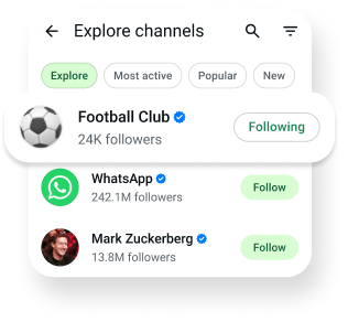 WhatsApp Channels is a simple and private way to get useful updates from the people and organizations you care about.